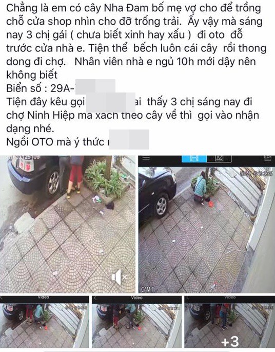 Theo đó, cây nha đam này do bố mẹ vợ của người đàn ông tặng, người này bỏ trước cửa shop để “nhìn cho đỡ trống trải”, tuy nhiên, cây nha đam đã bị 3 chị gái đi xe ô tô bê theo rồi thong dong đi chợ.