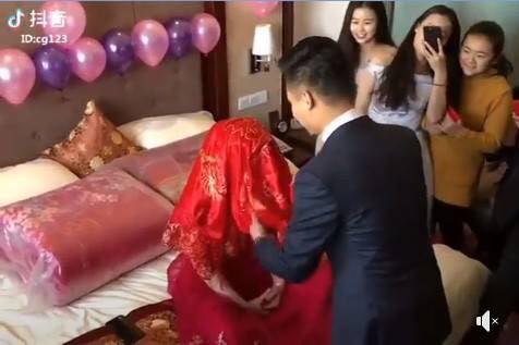 Đoạn clip ghi lại cảnh chú rể với khuôn mặt hào hứng đang tiến lại gần giở mạng che mặt của vợ mình. Trong đầu anh chắc đang mường tượng ra khuôn mặt xinh đẹp và rạng rỡ của tân nương. Nhưng khi tấm mạng vừa được lật lên, anh hoảng hốt giật lùi ra sau. “Ai thế này, đây là đâu, vợ tôi đâu?” dường như là toàn bộ cảm xúc của anh chàng tân lang bị cô dâu của mình bày trò chơi xỏ.
