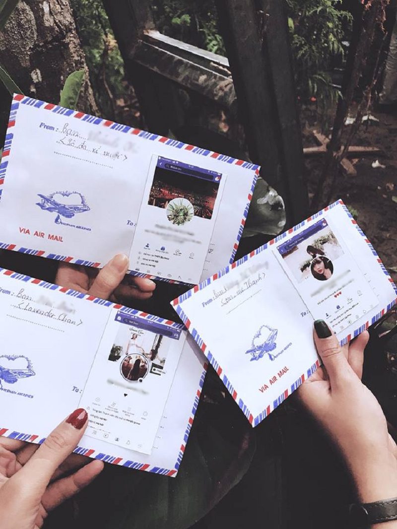 Từng chiếc phong bì đính kèm trang Facebook cá nhân của từng người cùng bức ảnh đẹp nhất. Ảnh: BEATVN