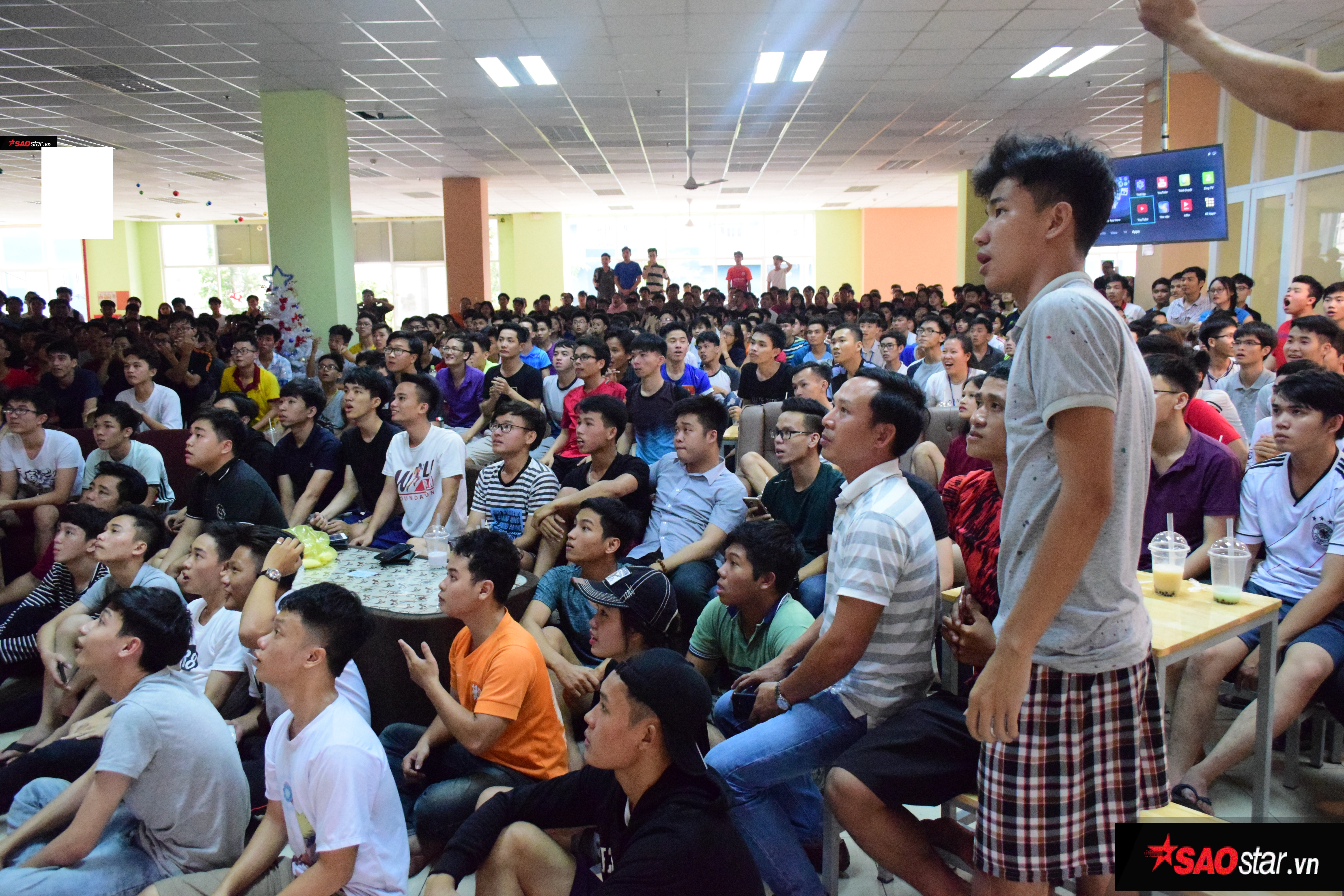 Tại KTX ĐHQG TP.HCM, hàng trăm các bạn sinh viên cũng tập trung rất sớm để xem trận đấu đầy cảm xúc này.