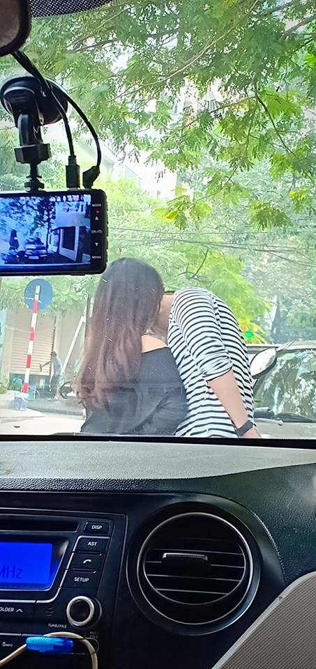 Theo đó, đôi nam nữ trẻ tuổi đứng trước xe ô tô của N.T đùa nghịch, ôm ấp và hôn nhau. Cả hai vô tư thể hiện những hành động yêu thương mà chẳng mảy may nghĩ có người đang nhìn.