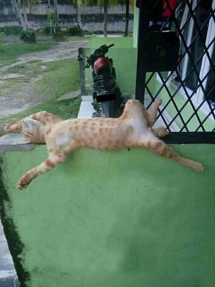 Các câu chuyện về sự ngáo ngơ của các boss mèo chưa bao giờ là có hồi kết, đây có thể coi là loài vật có nhiều hành động kỳ quặc nhất trên cái cuộc đời này. Từ việc tự cắn đuôi, sợ tắm, ăn rau xanh, cơ thể như không xương… và bây giờ còn cả ngủ theo kiểu chẳng giống ai nữa.