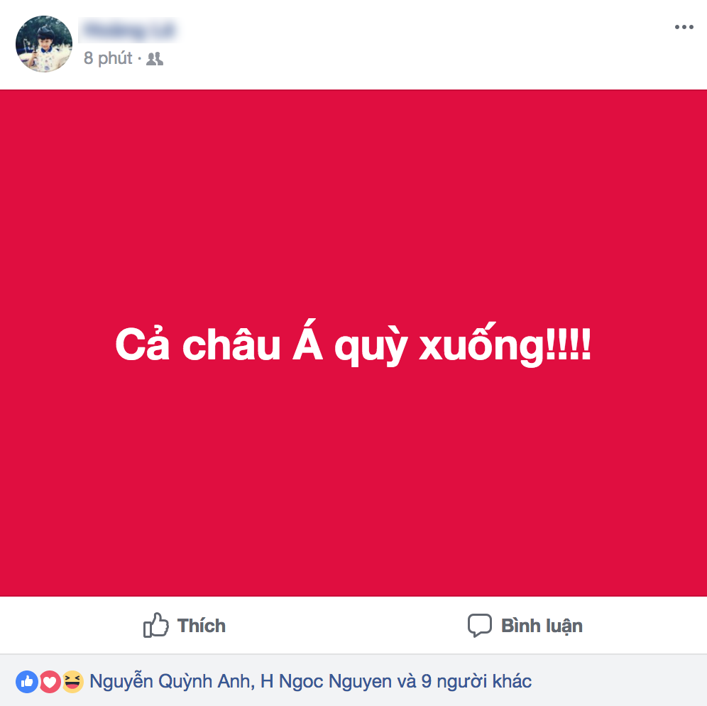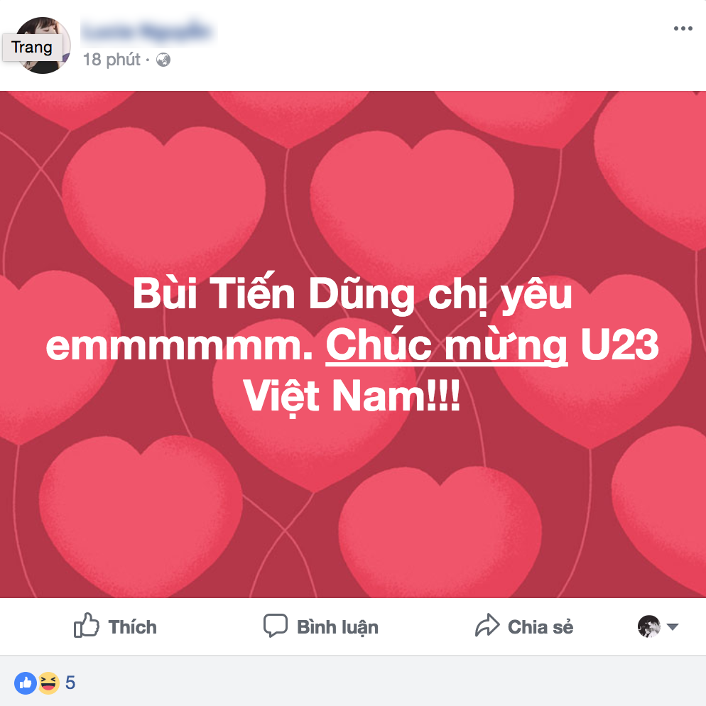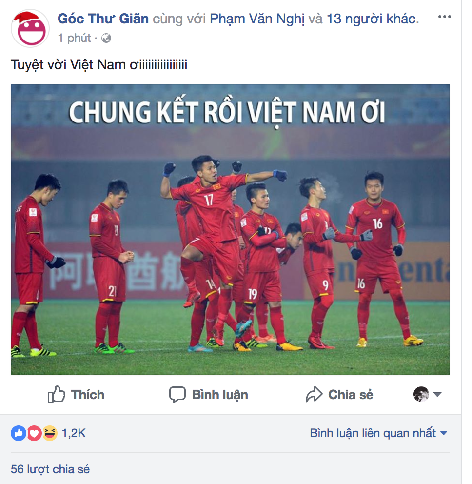 1 tài khoản facebook hài hước rủ bạn bè đi chúc mừng chiến thắng thuyết phúc của U23 Việt Nam.