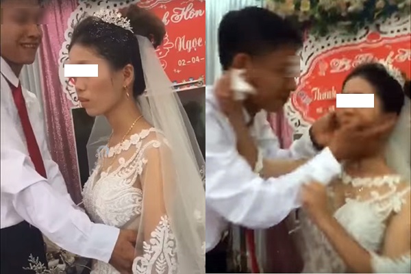 Mạnh bạo gạt chú rể ra khi chú rể tỏ vẻ muốn hôn