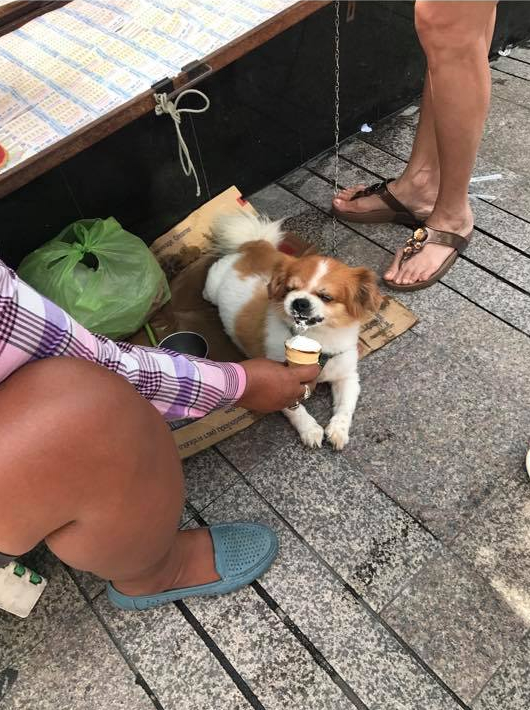 Thêm một tấm ảnh khác của chú chó này - được Sen đút kem cho ăn trong mãn nguyện