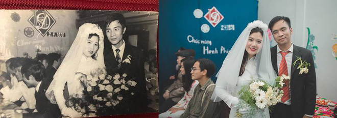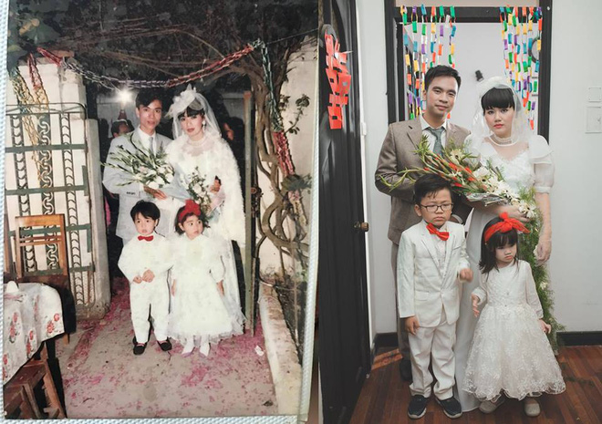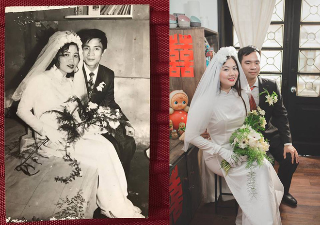 Mới đây, trên mạng xã hội liên tục chia sẻ hình ảnh về một bộ ảnh cưới vô cùng đặc biệt. Theo đó, hai nhân vật chính đã chọn cách tái hiện lại đám cưới của bố mẹ hai bên trong chính hôn lễ của mình. Những góc ảnh đậm màu xưa cũ được đôi bạn trẻ thể hiện vô cùng sống động, cùng với sự góp sức của những người bạn bè thân thiết.