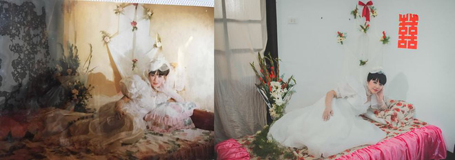 “Ý tưởng về bộ ảnh này đến khi mình xem lại những cuốn album lễ cưới của bố mẹ ngày xưa. Những nét đặc trưng của lễ cưới cách đây hơn 20 chục năm với bó hoa cưới dài, phòng tân hôn giản dị mà ấm cúng khiến mình vô cùng thích thú. Sự thay đổi và khác nhau trong lễ cưới của cách đây hơn 20 năm khiến mình rất hào hứng muốn thực hiện một món quà ý nghĩa tặng cho bố mẹ. Ngay lập tức, mình chia sẻ ý tưởng thực hiện một clip tái hiện lại đám cưới của bố mẹ hai bên cho anh Đức Anh và lên kế hoạch chiếu clip này trong lễ cưới của bọn mình như một món quà bất ngờ thú vị dành tặng cho gia đình”, Khanh kể.