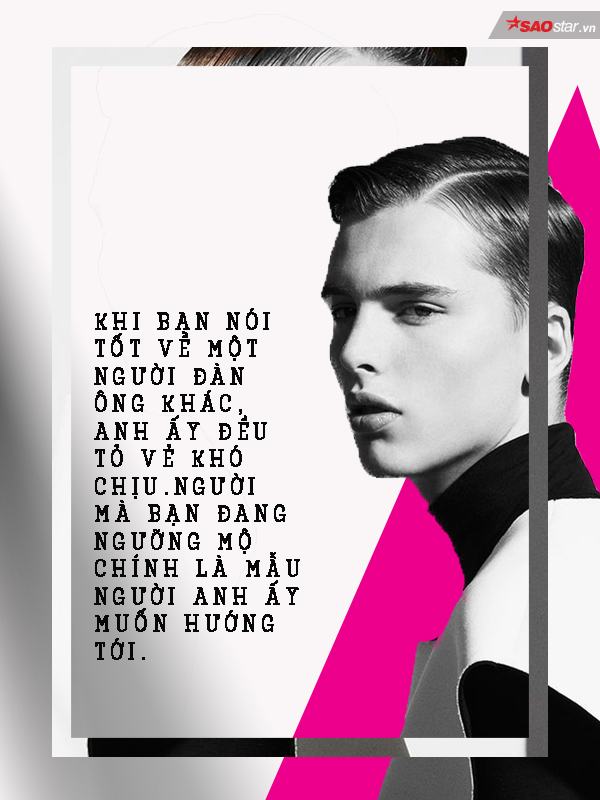 Khi bạn nói tốt về một người đàn ông khác, anh ấy đều tỏ vẻ khó chịu. Nguyên nhân thật đơn giản. Người mà bạn đang ngưỡng mộ chính là mẫu người anh ấy muốn hướng tới. Cũng có thể do anh ấy ghen vì bạn đã vui vẻ với người đó mà không có anh ấy bên cạnh.