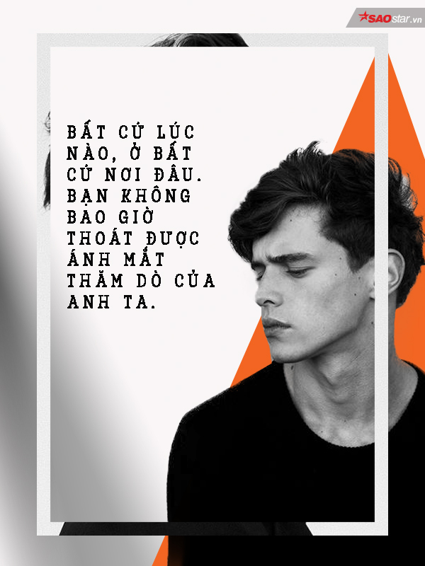 Khi bạn ở trong đám đông, phải tạm thời rời khỏi tầm nhìn của anh ấy thì anh ấy sẽ không ngừng quan sát bạn. Anh ấy muốn kiểm tra xem bạn đang làm gì, đang gặp gỡ ai… Bạn có làm gì cũng không thể thoát khỏi tầm kiểm soát của anh ấy.