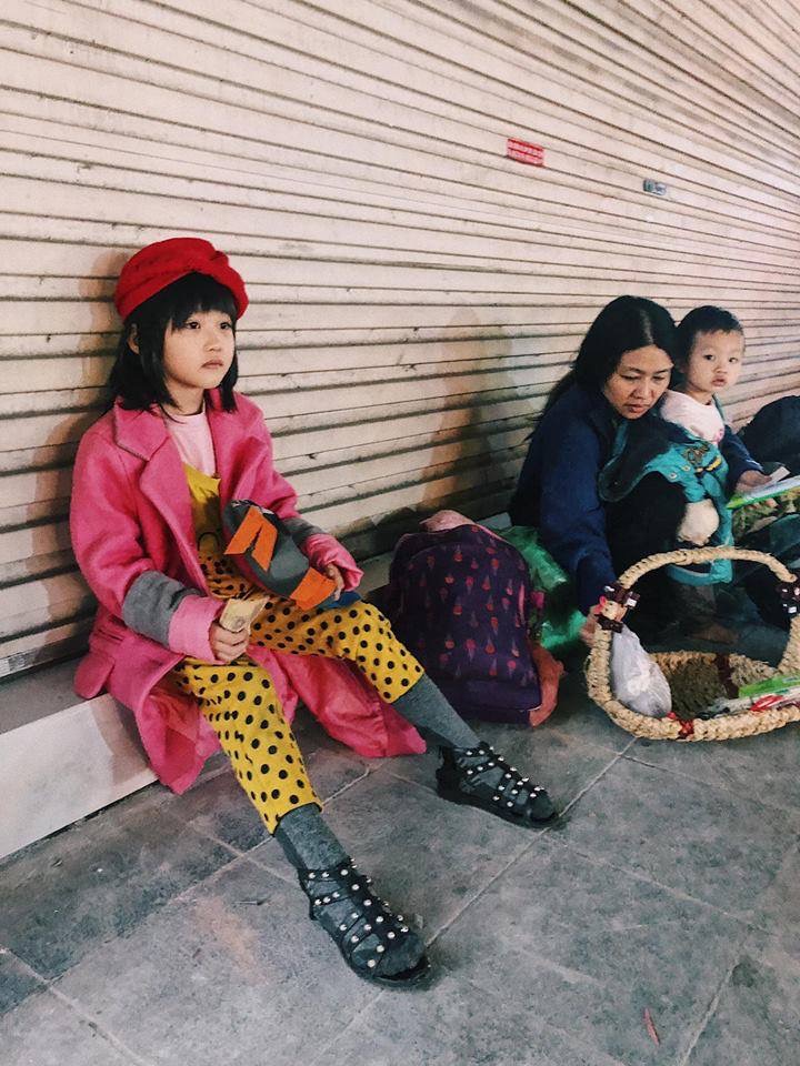 “Câu chuyện thú vị ngày hôm nay trong lúc chạy bộ, tôi vô tình bắt gặp một bé gái ngồi cùng mẹ ở góc phố Hàng Bông gần bờ hồ. Chuyện chẳng có gì để nói nếu như tôi tập trung vào việc chạy nhưng có một thứ gì đó đã thôi thúc tôi đứng lại và trước mắt tôi là một cô bé tầm 6 tuổi với set đồ cực bắt mắt! thật sự bất ngờ vì cô bé là người vô gia cư không nhà cửa và tôi rất ấn tượng về khả năng mix đồ của bé gái từ màu sắc cho tới quần áo phụ kiện.
