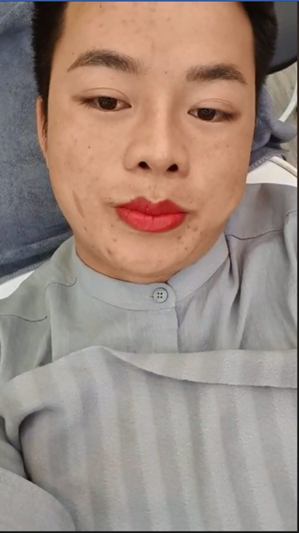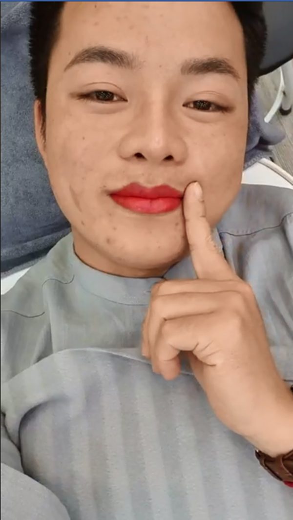 Anh chàng còn tạo dáng điệu đà như con gái, sau khi được vợ dẫn đi xăm môi.