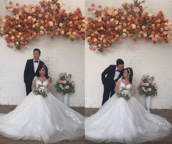 Cô dâu 62 tuổi, rạng rỡ chụp ảnh cưới bên chồng trẻ.