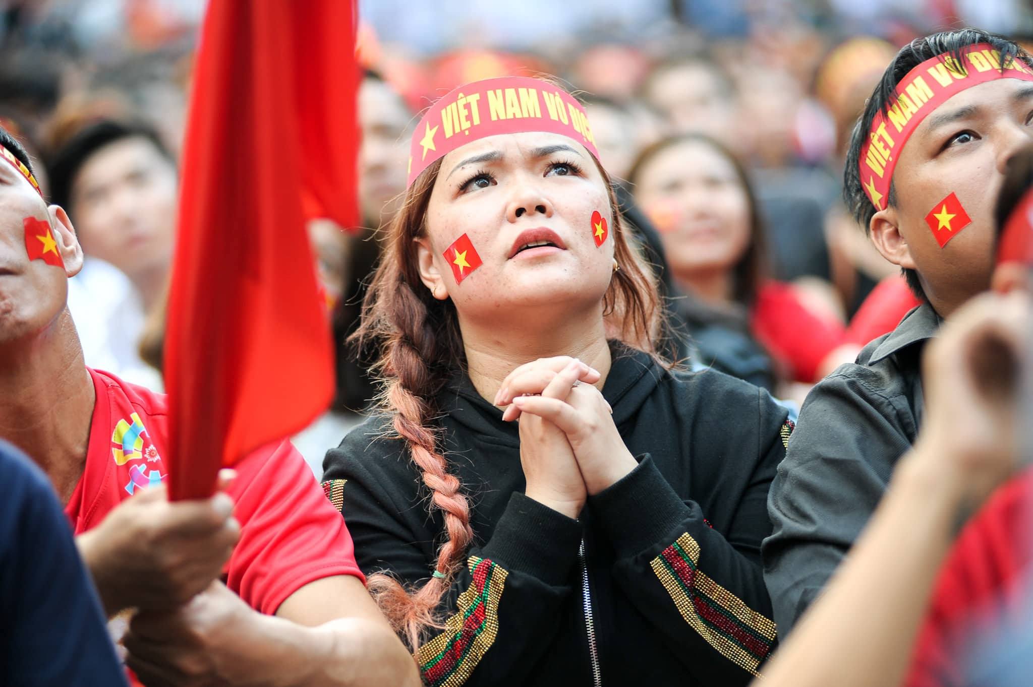 Người ham mộ không khỏi tiếc nuối trước bàn thua 2-0 của Việt Nam khi kết thúc hiệp 1.