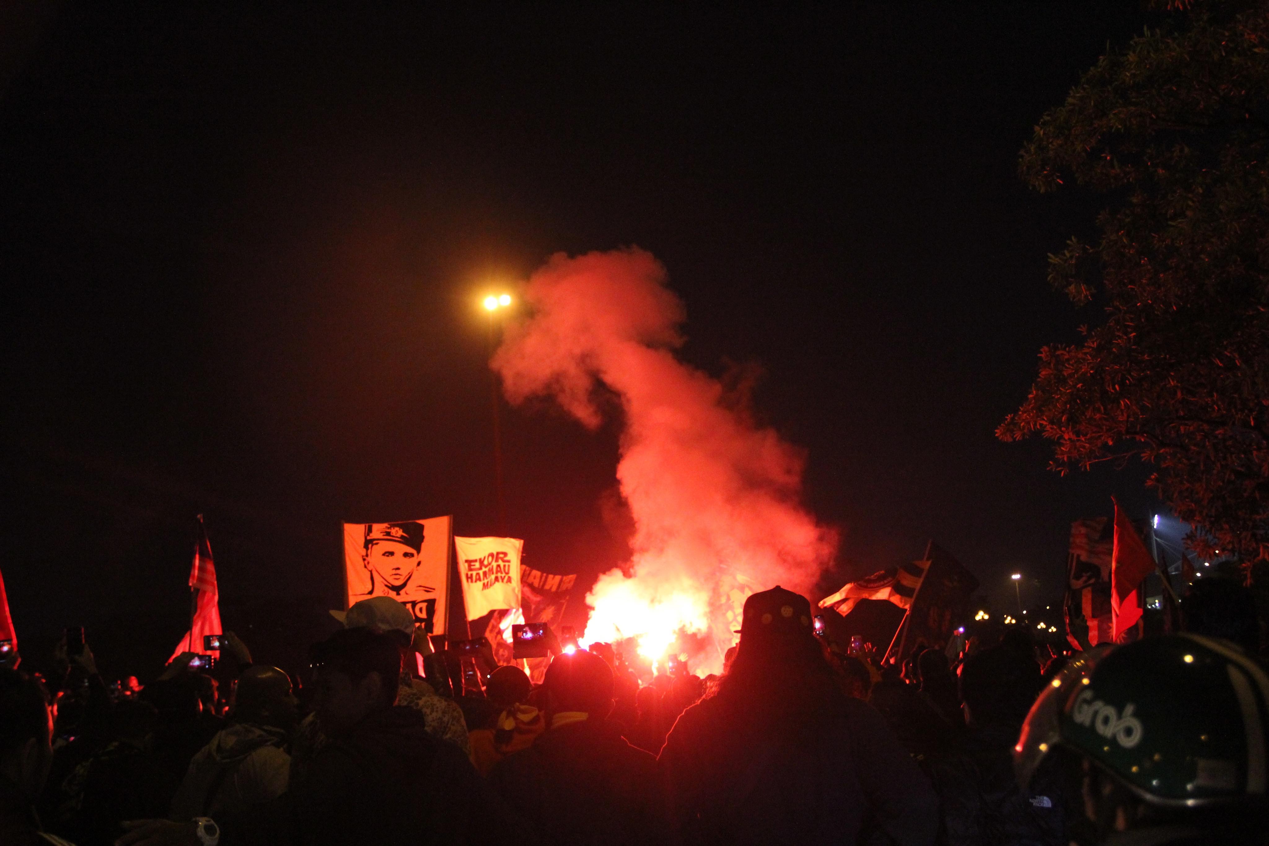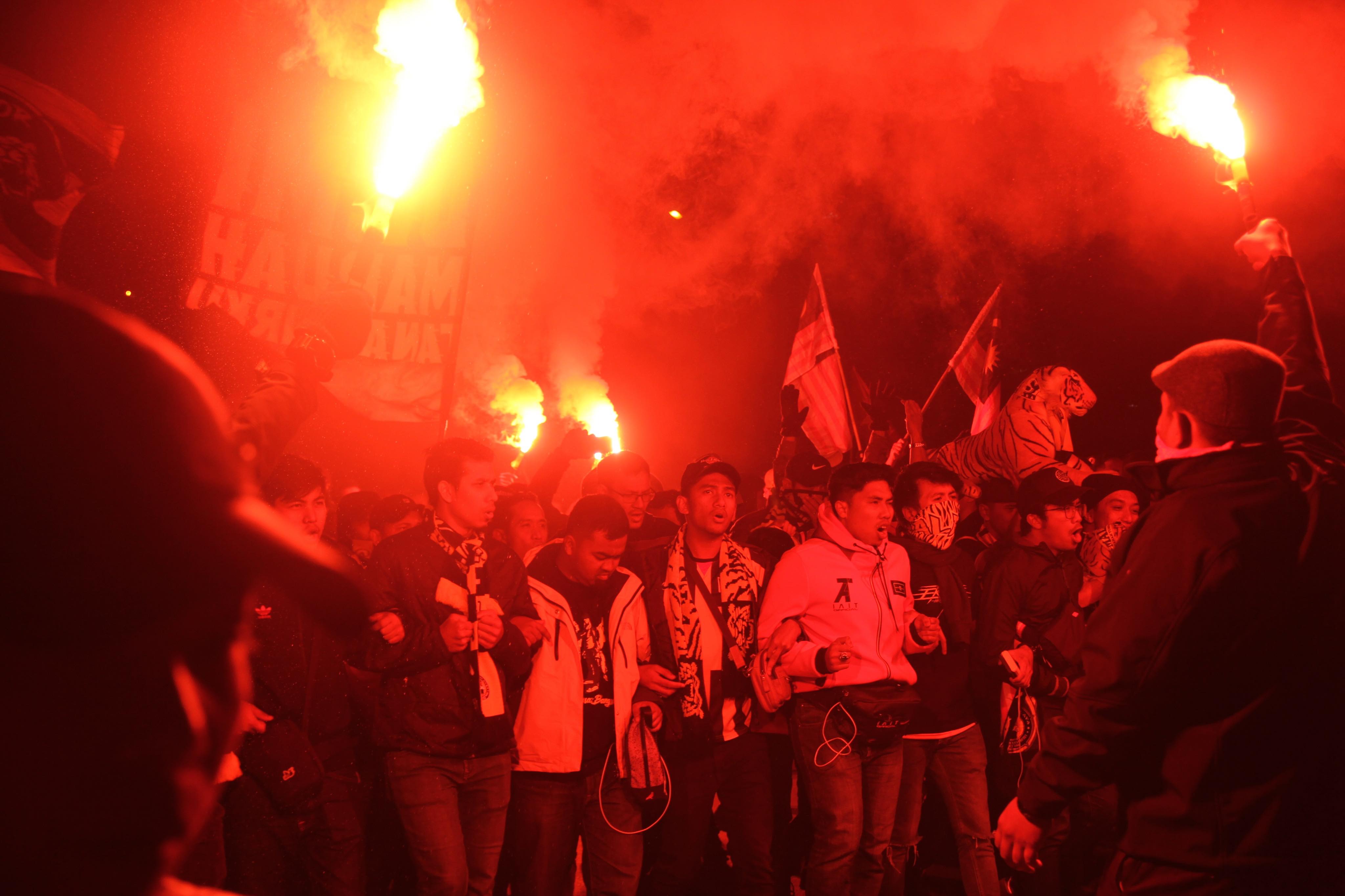 Cổ động viên Malaysia đốt pháo sáng