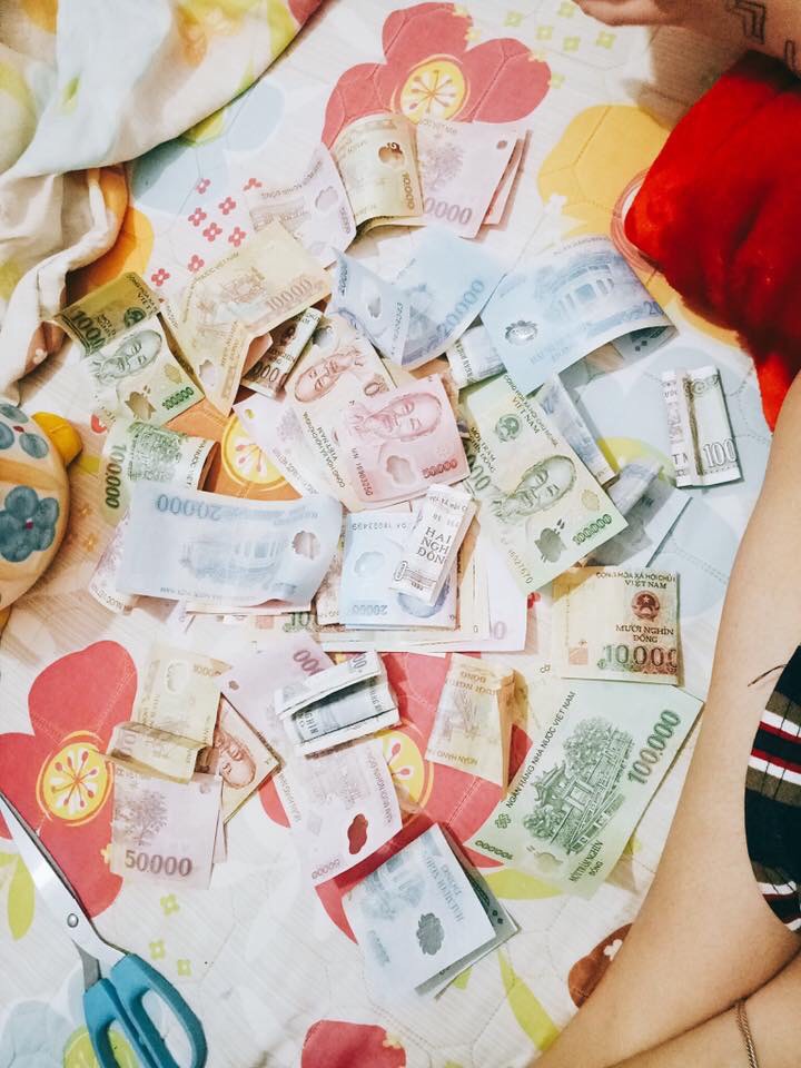 Số tiền cô em tích lũy cho chị gái vay. Ảnh: Thảo Lan