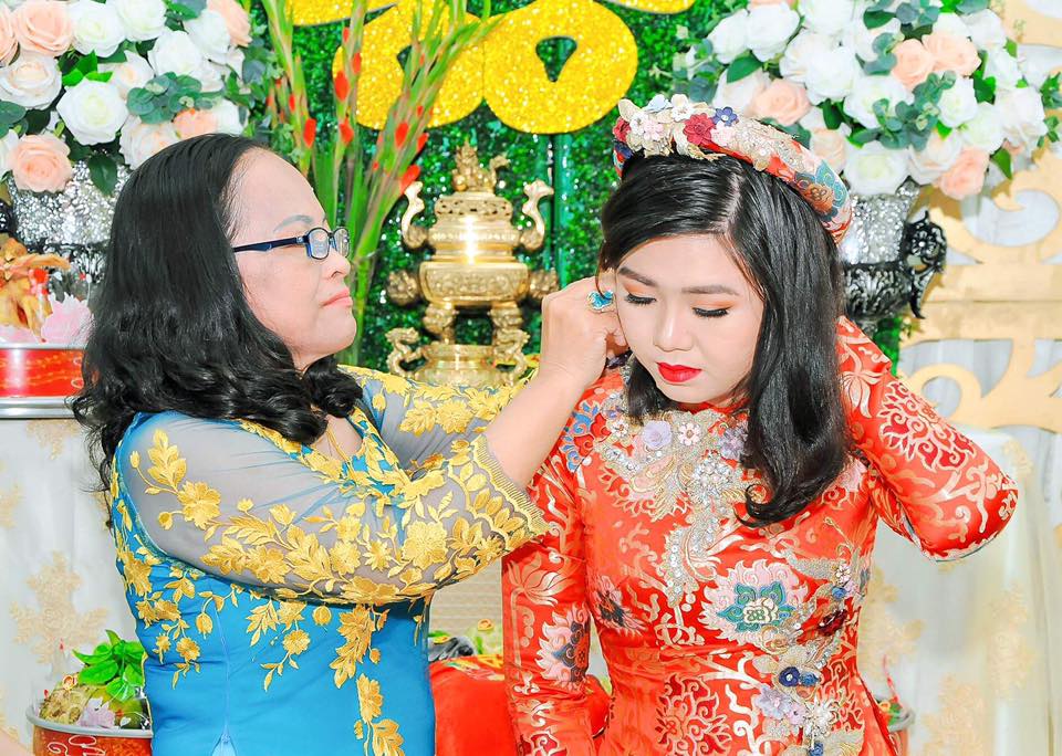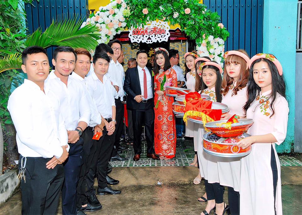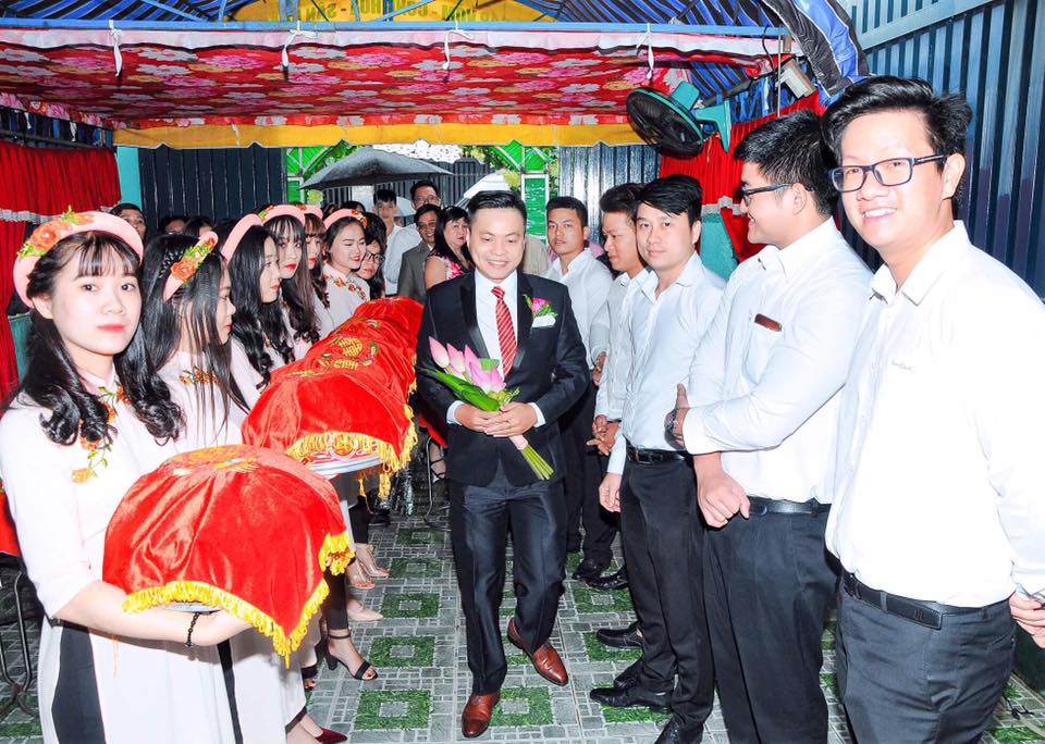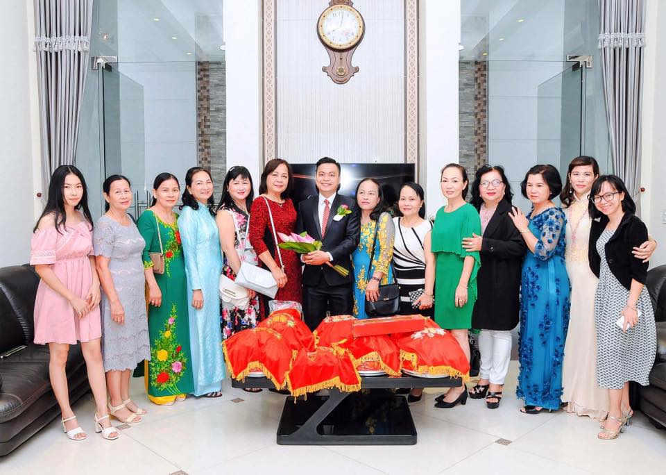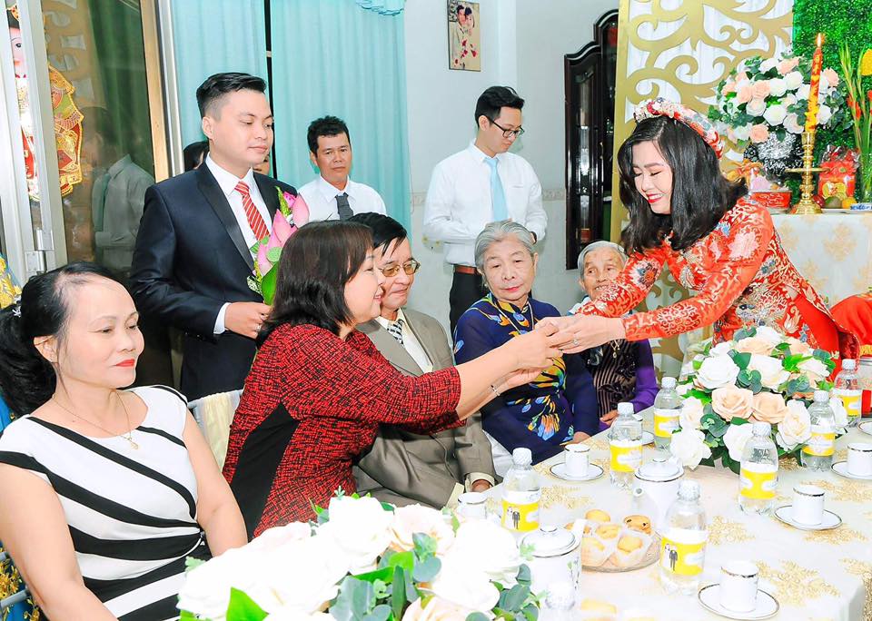 Cặp đôi đính hôn trước sự chứng kiến và chúc phúc của 2 bên gia đình.