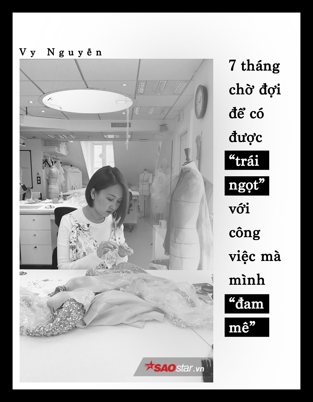 Haute Couture - May đo cao cấp là dòng thời trang đòi hỏi sự tỉ mỉ, chuyên nghiệp và cẩn trọng. Vốn say mê Haute Couture, đây cũng chính là ngành học chuyên môn của Vy ở trường đại học và cũng chính là bộ phận mà cô xin được thực tập khi mới bước chân vào Chanel. Đối với Vy thì đây là công việc rất đặc biệt, vì nó đòi hỏi sự nhẫn nại mà phải giữ cho tinh thần thoải mái, sự sáng tạo cũng như tỉ mỉ, sự khéo léo, kiến thức và rất nhiều thứ khác.