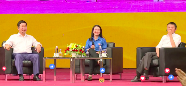 Hình ảnh Khánh Linh trong buổi đối thoại với tỷ phú Jack Ma.