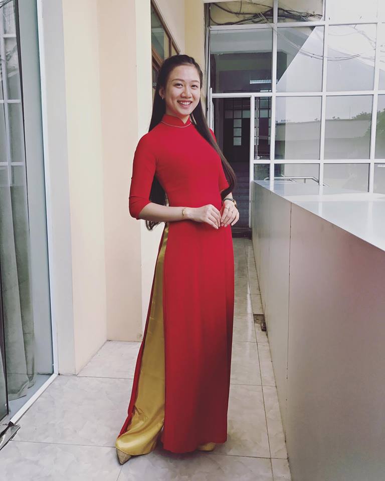 Áo dài truyền thống với thiết kế nền nã là trang phục cô bạn thường chọn lựa khi tham dự các chương trình đón tiếp quan khách cao cấp.