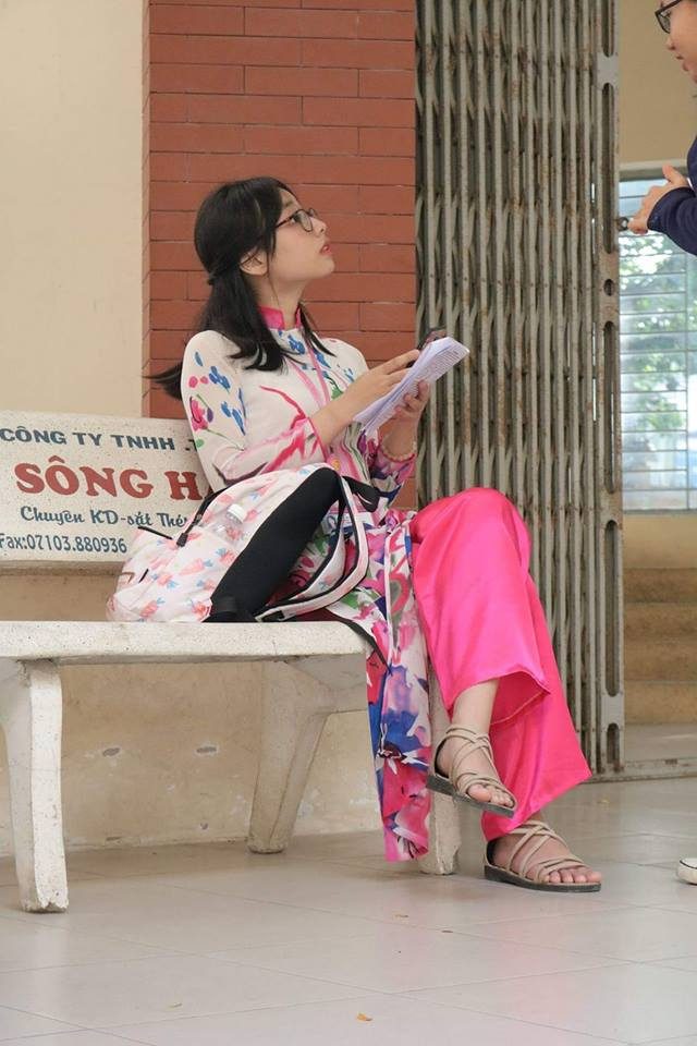 Bức ảnh đang được cư dân mạng lan truyền mạnh mẽ bởi nhân vật chính có nhan sắc trong trẻo, ngây thơ và dáng người thanh mảnh, nổi bật trong tà áo dài sắc hồng.