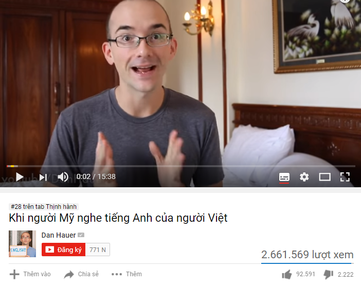 Cộng đồng mạng vẫn đang chia sẻ “rần rần” về đoạn clip “Khi người Mỹ nghe tiếng Anh của người Việt Nam”. Ngay thời điểm hiện tại, clip dài 15 phút được đăng tải trên kênh Youtube của một thầy giáo ngoại quốc sinh sống tại Việt Nam đã thu hút hơn 2,5 triệu lượt xem chưa đầy một tuần và tạo nên một làn sóng trái chiều trong dư luận khiến cộng đồng mạng tranh cãi.
