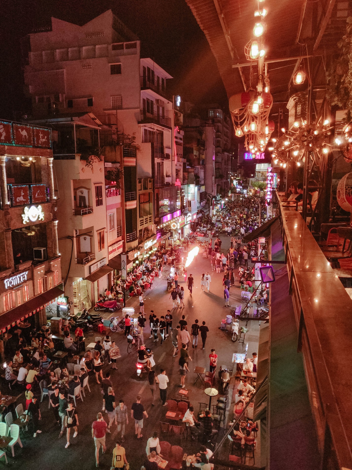 Ở một góc nhỏ khác trong thành phố, phố đi bộ Bùi Viện luôn sống động và trẻ trung như chính nhịp sống của các bạn trẻ nơi đây với những quán ăn và các hoạt động vui chơi giải trí diễn ra đến tận đêm khuya. Dù chỉ mới gắn bó với Sài Gòn được 1 năm, cô sinh viên Đặng Nguyễn Tường Vân vẫn luôn ấn tượng với không gian rộn ràng đầy tươi trẻ và cuộc sống về đêm đầy sắc màu ở con phố đêm này.