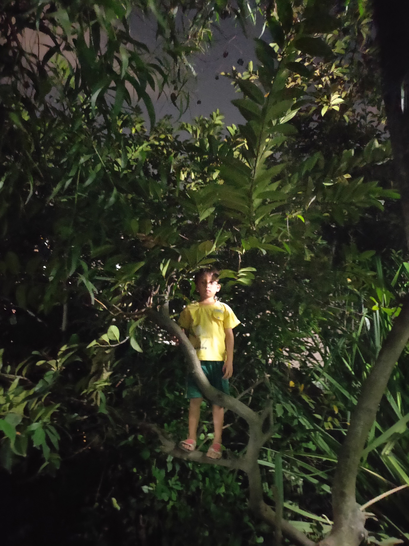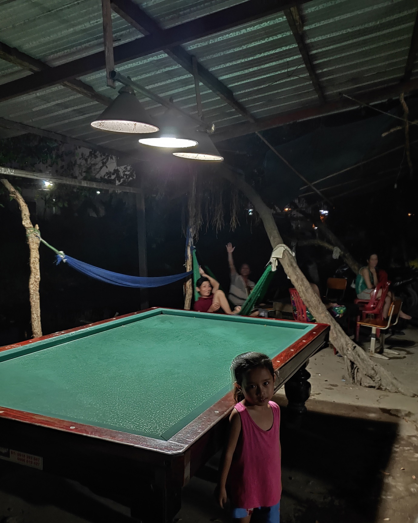 Những bức ảnh của Mỹ Linh khắc họa khá chân thật về buổi tối của những người lao động nhập cư: ánh sáng hắt ra từ những mái lều tạm bợ, người mẹ đút cơm cho con, những người đàn ông nằm võng kể chuyện đời cho nhau nghe… Đặc biệt, lũ trẻ trong bộ ảnh này rất hồn nhiên và lém lỉnh. Chúng trèo lên cây, nghịch ngợm bên bàn bida… nhưng lại rất “nghiêm túc” khi đứng trước ống kính.