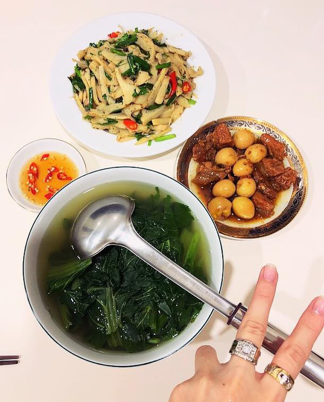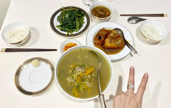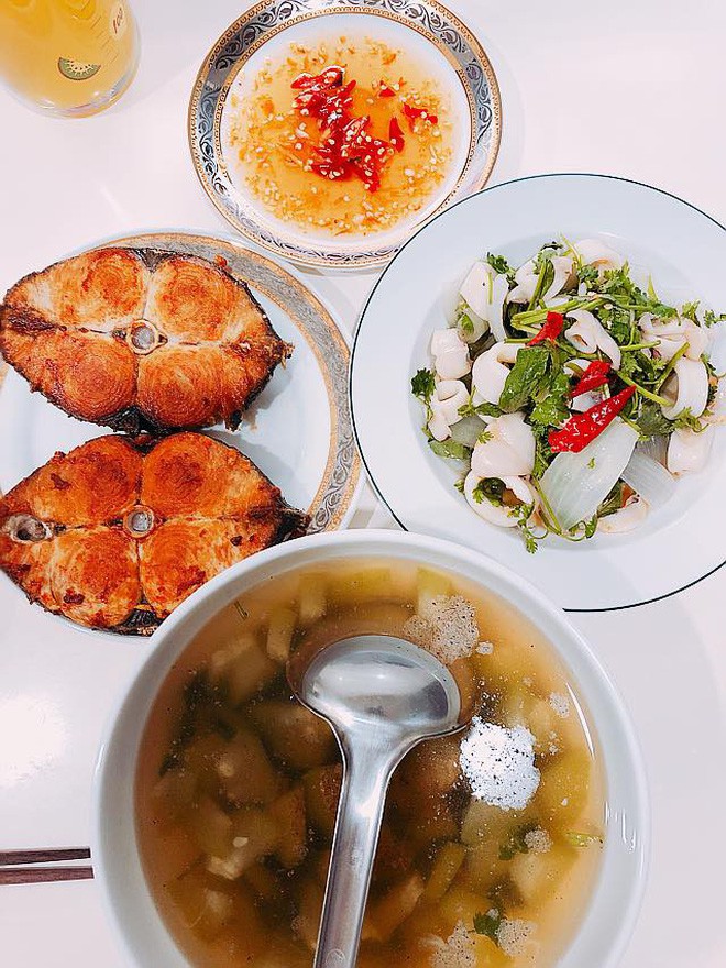 Những mâm cơm hàng ngày được chuẩn bị công phu, bắt mắt lại đầy đủ cả món mặn lẫn món canh của bà mẹ trẻ sau khi được chia sẻ lên mạng xã hội đã nhanh chóng nhận được những lời khen tấm tắc của hội chị em.
