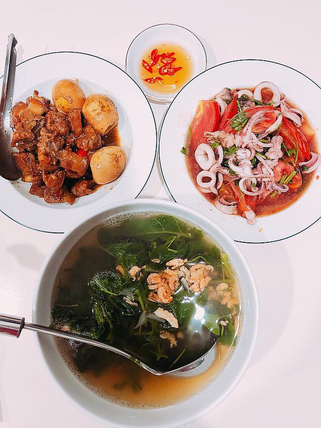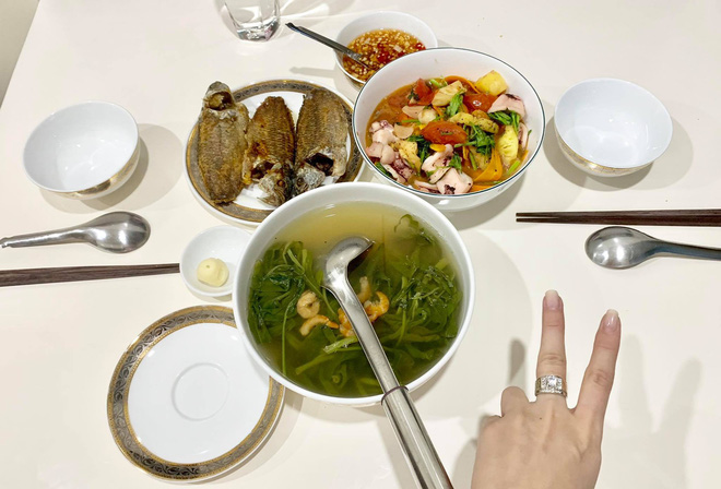 Bởi thế mà, trên các hội nhóm dành cho các chị em chia sẻ kinh nghiệm đi chợ, nấu ăn theo tiêu chí “ngon - bổ - rẻ”, rồi khoe mâm cơm siêu tiết kiệm của nhà mình, ai chi tiêu càng ít mà bữa cơm vẫn đầy đặn, đủ chất, hấp dẫn thì càng được khen là khéo léo. Cùng hưởng ứng xu hướng khoe mâm cơm của gia đình, mới đây cô vợ trẻ cũng mạnh dạn khoe những mâm cơm bắt mắt do bản thân tự tay chuẩn bị cho hai vợ chồng mỗi ngày.