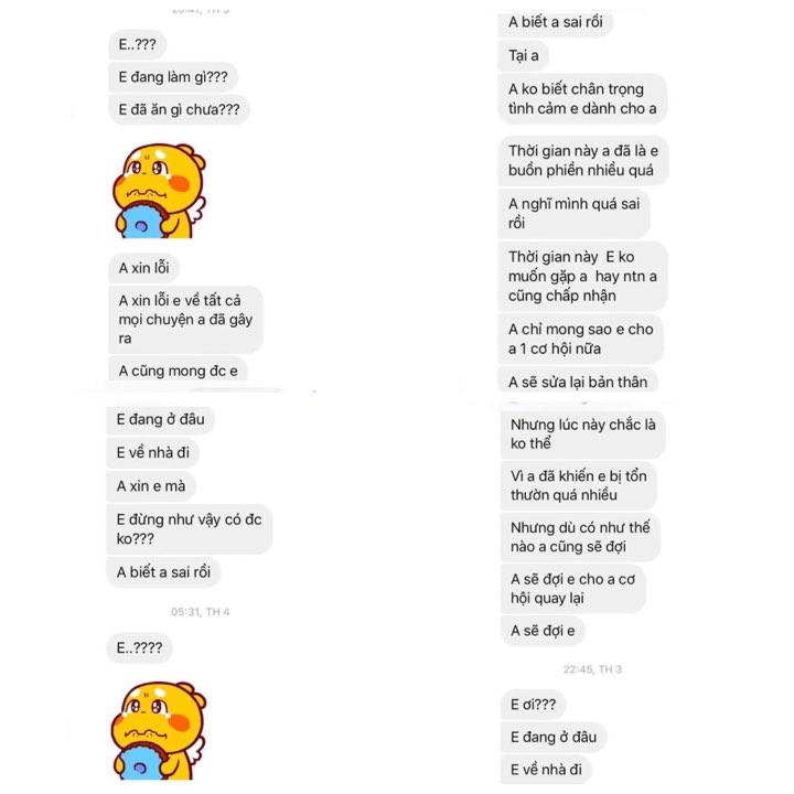 Tin nhắn xin lỗi của chồng gửi cho vợ mình.