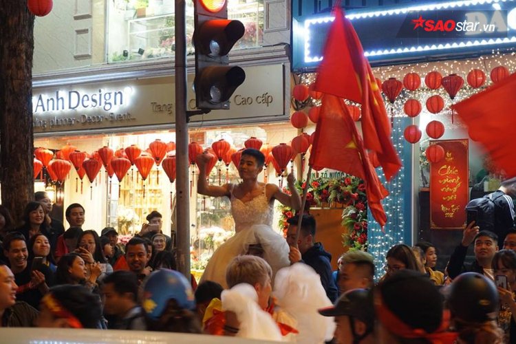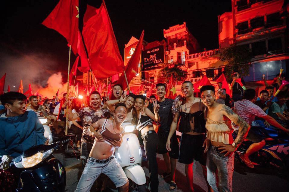 Ngay sau khi trận đấu kết thúc, hàng ngàn người hâm mộ Việt Nam đã tràn ra đường ăn mừng. Trên khắp các ngả đường, cờ đỏ sao vàng tung bay phấp phới. Già trẻ, gái trai, ai nấy đều mang theo Quốc kỳ, cồng chiêng, kèn, loa để hò hét, reo vui với lòng tự hào dân tộc dâng cao. Mỗi khi đi qua nhau, fan bóng đá lại cùng vẫy tay chào và hô vang khẩu hiệu: “Việt Nam vô địch” làm không khí càng hân hoan, tự hào hơn bao giờ hết.