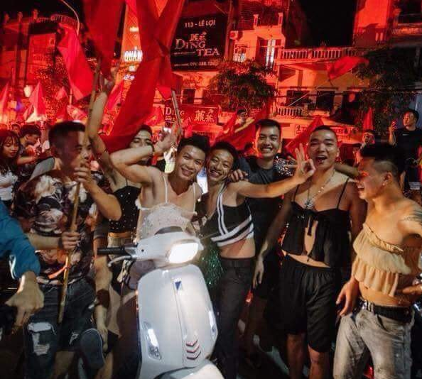 Sự kiện trên từng là sự kiện đáng nhớ với hàng triệu fan bóng đá Việt Nam. Và trong đêm ăn mừng chiến thắng ấy, tại nhiều con đường, ngõ phố, rất nhiều chàng trai mặc váy cưới, “quẩy” tung phố đi bộ, mừng chiến thắng lịch sử của U23 Việt Nam.
