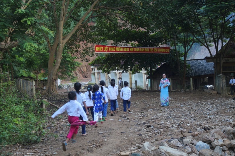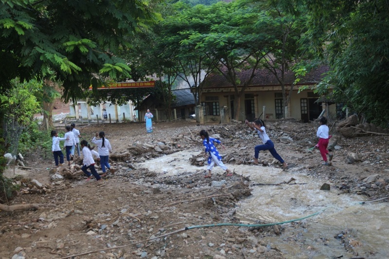 Để các em có nơi học tập, Đảng bộ, chính quyền xã Mường Ải, các thầy cô giáo, các chiến sĩ Quân đội cùng người dân địa phương đã nỗ lực khắc phục hậu quả mưa lũ, dọn vệ sinh trường lớp để đón học sinh.