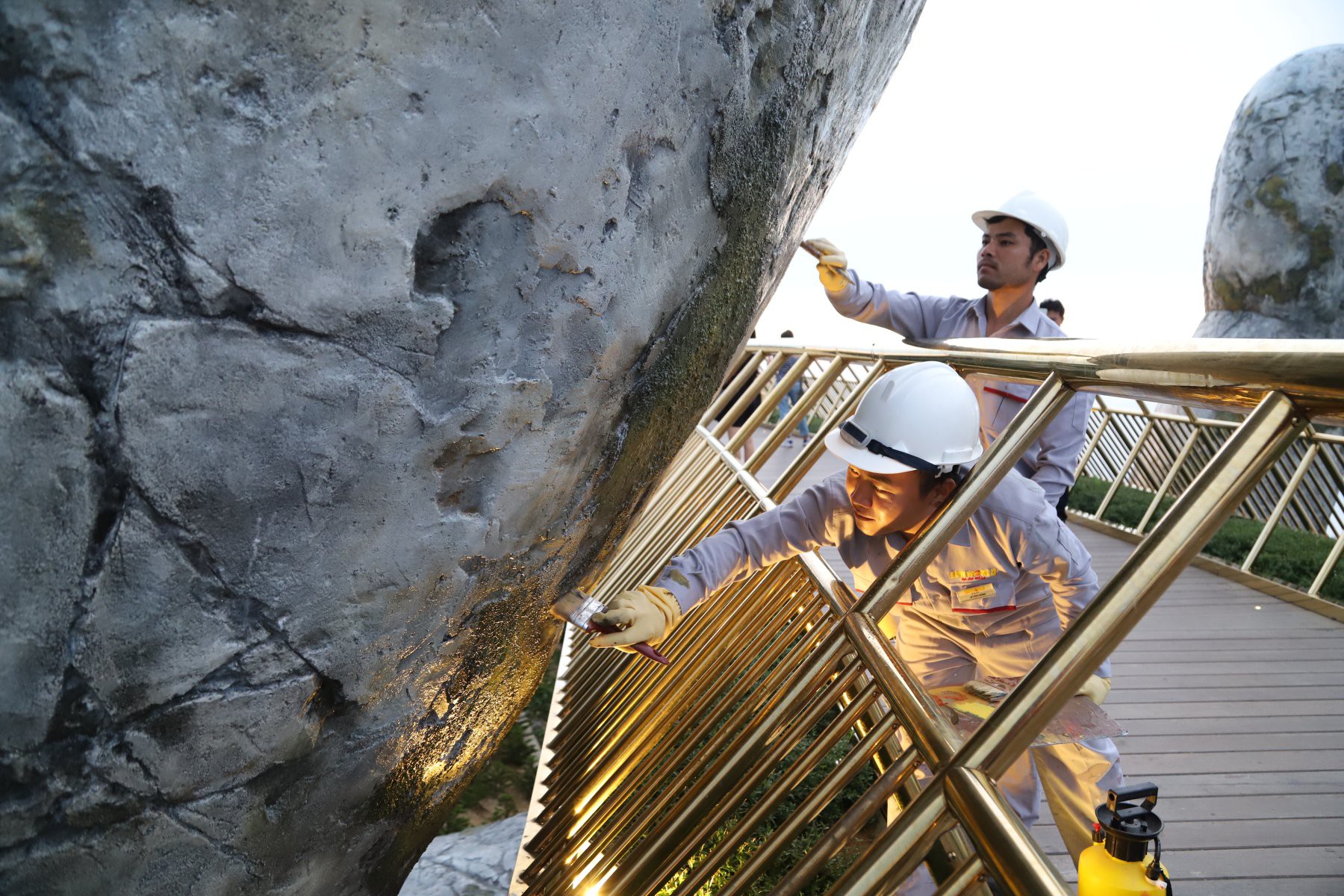Trước đó, BQL Cầu Vàng (Đà Nẵng) cũng đã phải cử một ekip chuyên nghiệp tới phục hồi lại nguyên vẹn cánh tay bằng đá đã bị du khách vô ý thức dùng bút xóa viết lên.