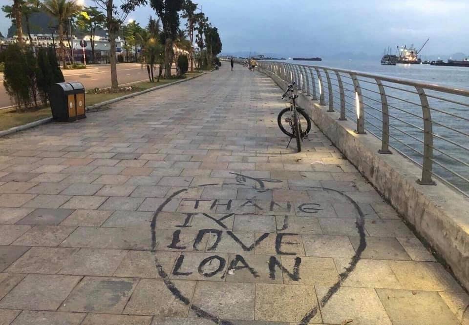 Cụ thể, trên con đường lát đá chống trơn tuyệt đẹp trong khu Vinhome Dragon Bay Hạ Long, một ai đó đã dùng sơn hoặc mực dầu đen viết lên hàng chữ: ”Thắng Love Loan” khá bự. Hình ảnh này đã khiến người dân Hạ Long nói riêng và cộng đồng nói chung tức giận bởi cảnh quan đô thị bị bôi xấu như thế.