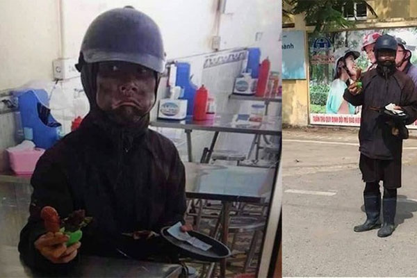 Nhân vật ăn xin mặt đen gây xôn xao dư luận.