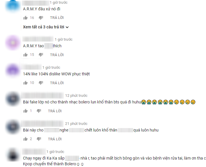 Nhắc đến bình luận trái chiều trên trang cá nhân, fanpage và nhiều nhất là youtube, hot teen Hà Thành nhận định: “Mình chưa đọc phản hồi nhưng cũng biết nó như thế nào. Ý kiến tiêu cực đa phần là fandom của BTS. Tuy nhiên, các bạn nên là những ARMY có suy nghĩ và văn minh”.
