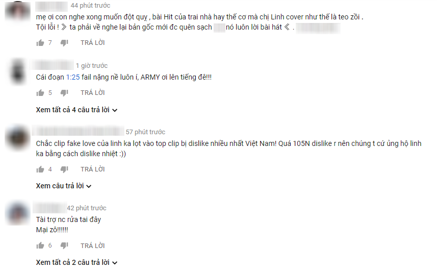 Ngay sau khi bản full MV Fake Love đã được phát hành trên Youtube, chưa đầy 24 giờ đồng hồ đã thu về hơn 108 ngàn lượt dislike và chỉ có 15 ngàn lượt like. Chưa kể tới gần 36 ngàn lượt bình luận đa phần đều mang tính chê bai giọng hát và cách thể hiện của Linh Ka. Điều đáng nói, đa phần những bình luận tiêu cực đến từ cộng đồng ARMY (tên fandom của BTS).