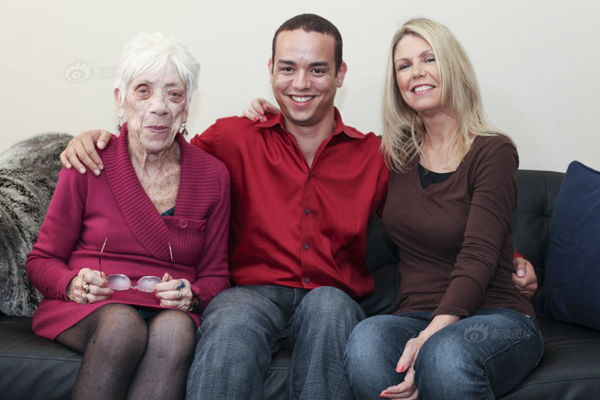 Kyle Jones (giữa) cùng mẹ (ngoài cùng bên phải) và bạn gái là bà Marjorie McCool. Ảnh: Sina