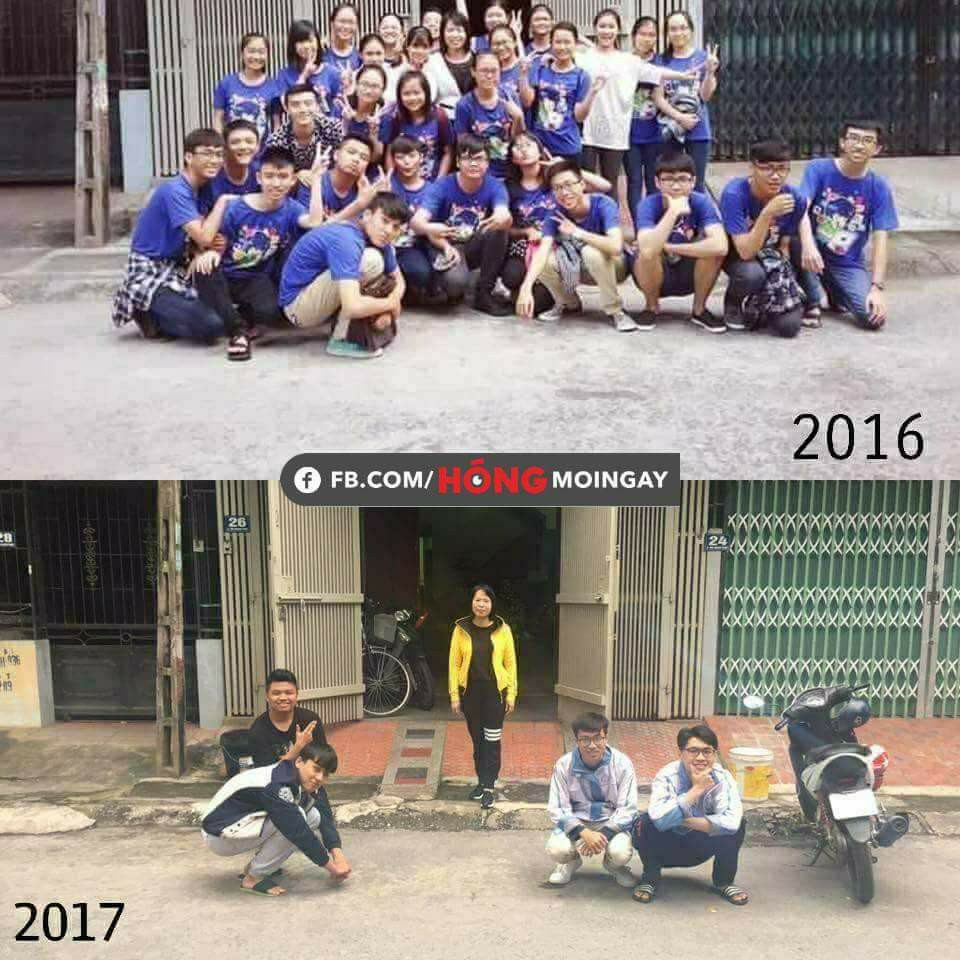 Sau 5 năm, một số người đã vắng mặt. Nhưng những thành viên còn lại vẫn cố gắng gặp gỡ và cùng chụp lại bức ảnh ở ngay chỗ họp lớp ngày xưa