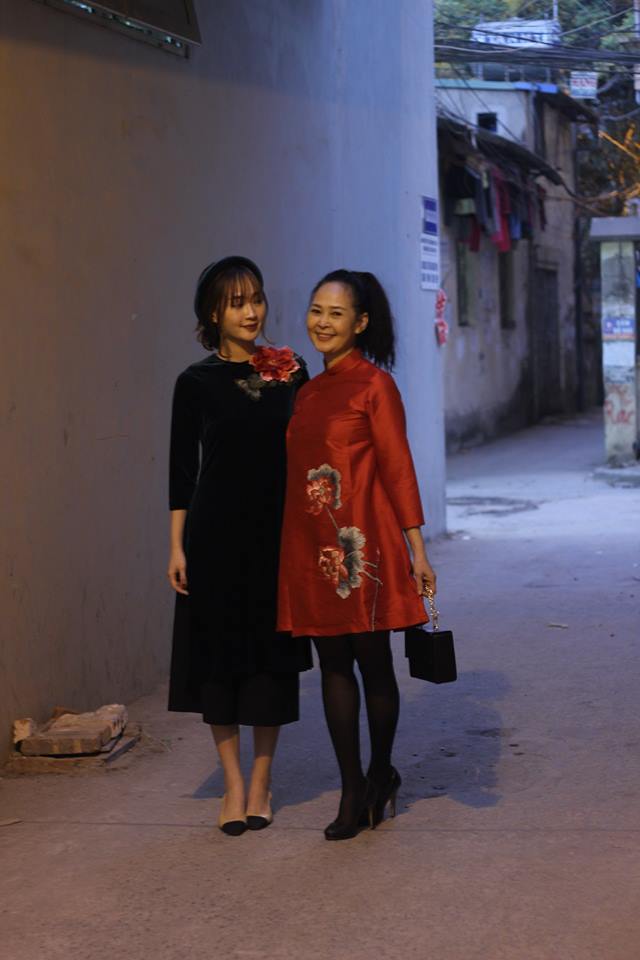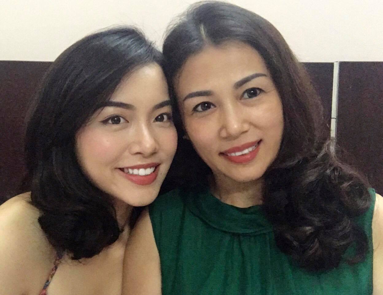 Hà Trúc chụp ảnh cùng mẹ. Mẹ cô hiện tại đã gần 50 tuổi nhưng da dẻ vẫn rất căng và mịn