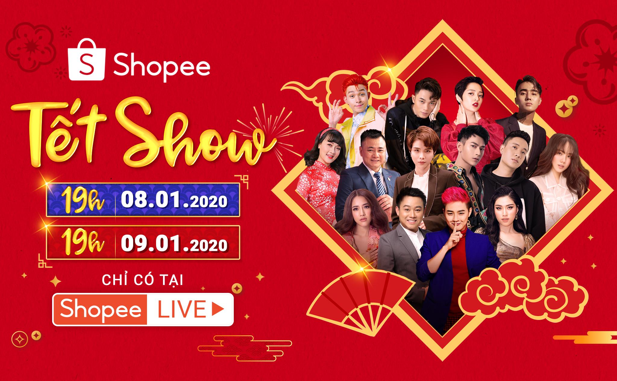 Vào lúc 19H00 ngày 8/1, độc quyền trên tính năng Shopee Live của ứng dụng mua sắm Shopee, dàn khách mời siêu sao sẽ cùng hội tụ tại Shopee Tết Show để mang đến không gian âm nhạc, giải trí kết hợp mua sắm siêu ưu đãi dành tặng người dùng.
