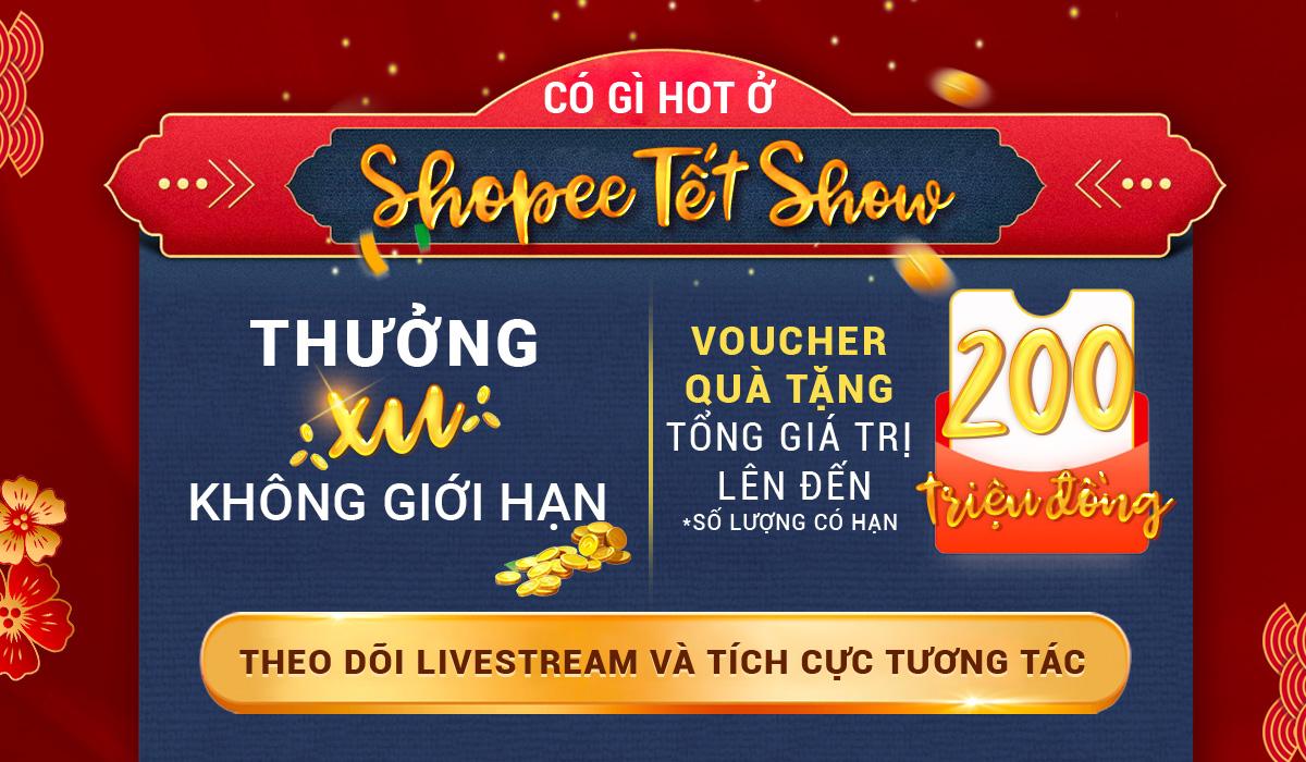 Đặc biệt, Shopee Tết Show còn ngập tràn quà tặng từ kho Shopee Xu không giới hạn, Voucher quà tặng có tổng trị giá lên đến 200 triệu đồng, đấu giá vui để có cơ hội sở hữu xe Honda Lead 125cc 2019 phiên bản cao cấp, iPhone Apple 11 Pro 64G bản LL Quốc tế Mỹ với giá siêu ưu đãi.