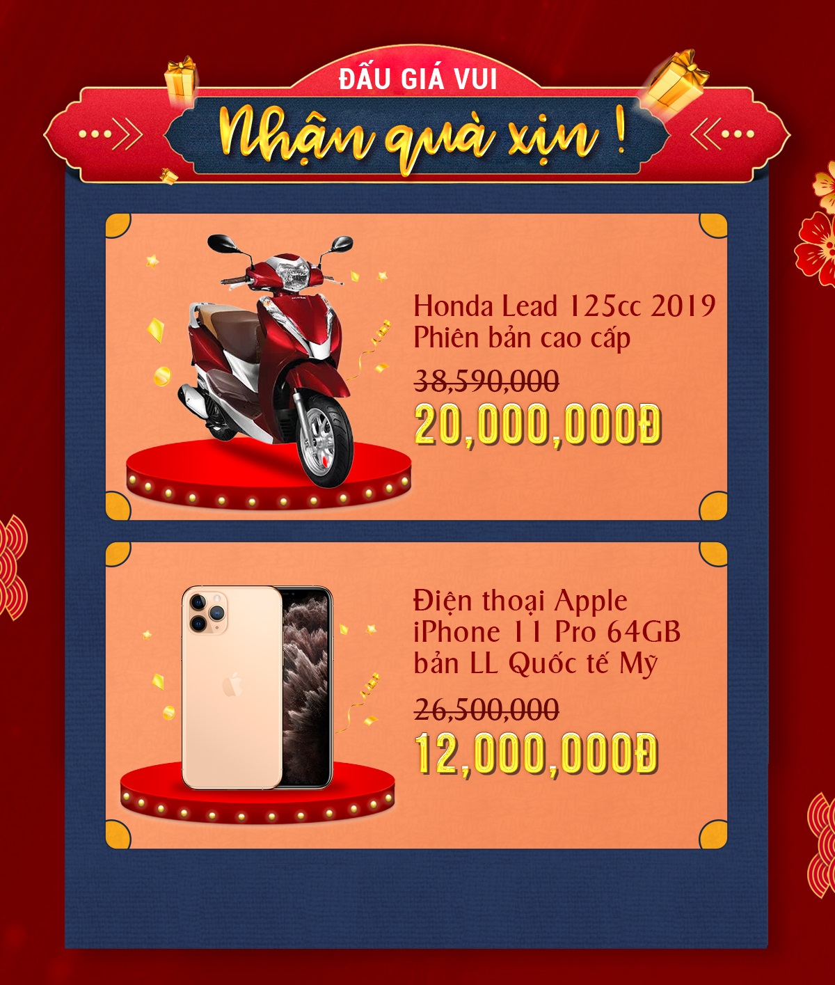 Chưa dừng lại ở đó, người dùng Shopee còn có cơ hội sở hữu xe siêu xe Honda Lead 125cc 2019 phiên bản cao cấp và điện thoại iPhone Apple 11 Pro 64G bản LL Quốc tế Mỹ với giá siêu ưu đãi chỉ có tại Shopee Tết Show nếu chiến thắng trò chơi Đấu giá vui - Nhận quà xịn. Thể lệ chi tiết tham khảo tại đây.