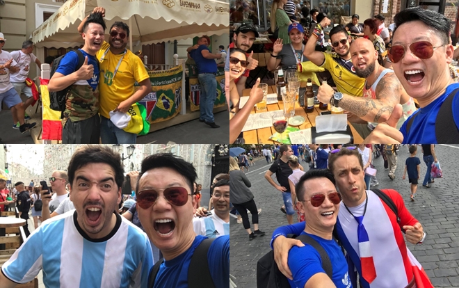 Với hành trang là tình yêu bóng đá, ca sĩ Hoàng Bách và phượt thủ Hoàng Lê Giang đã rất hào hứng cho chuyến đi sang Nga lần này. Hai anh chia sẻ: “Được tận mắt chứng kiến một trận bóng với quy mô “khủng” như thế này thật sự đã để lại cho Bách và Giang rất nhiều ấn tượng. Khác hẳn với những lần xem trên TV, không khí náo nhiệt, những sự cổ vũ nhiệt tình trên khán đài khiến những pha bóng trở nên “nghẹt thở” hơn rất nhiều”.
