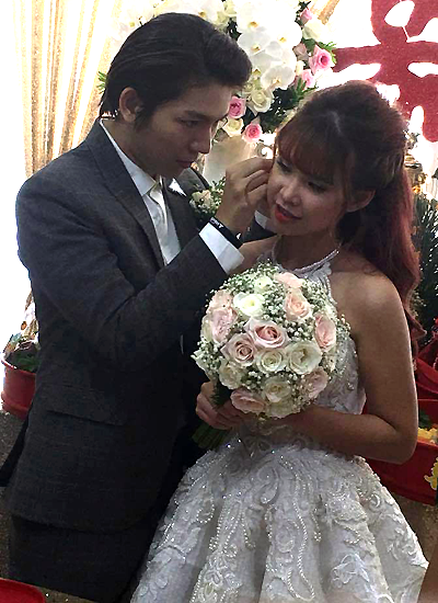 Khởi My và Kelvin Khánh trong hôn lễ tại nhà riêng năm 2017