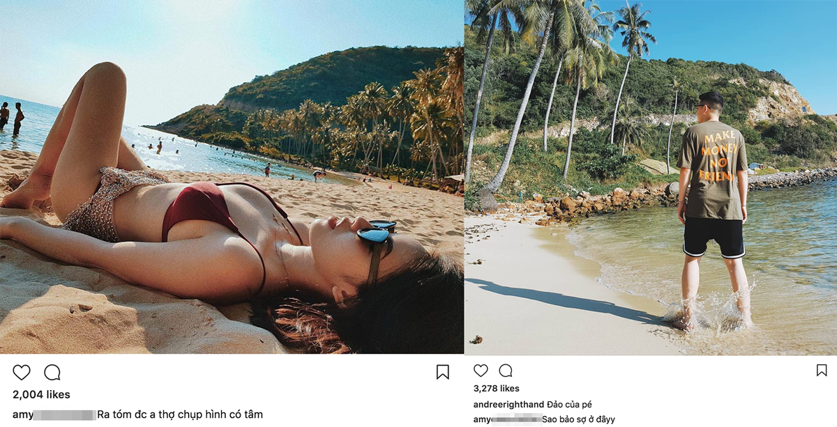 Nghi vấn bắt đầu từ một số sự trùng hợp trong các bức ảnh Instagram của Andree và cô gái có nickname Amychichi. Cô nàng đã up một tấm ảnh che mặt một chàng trai lên story và ghi: “Bắt gặp một bé đi lang thang ở đây”. So với một bức ảnh mà Andree đăng trên Instagram của mình, không khó để nhận ra bức ảnh chụp chung một chàng trai. Họ còn bị ”soi” là đã đi du lịch biển cùng nhau nữa.