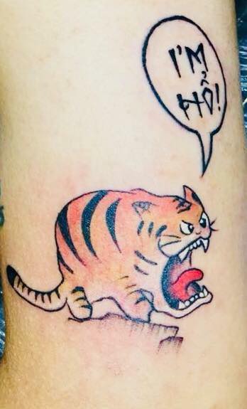 Không thể nhịn nổi cười với hình xăm giống y hệt bản gốc này. Ảnh: Diễm Trang.