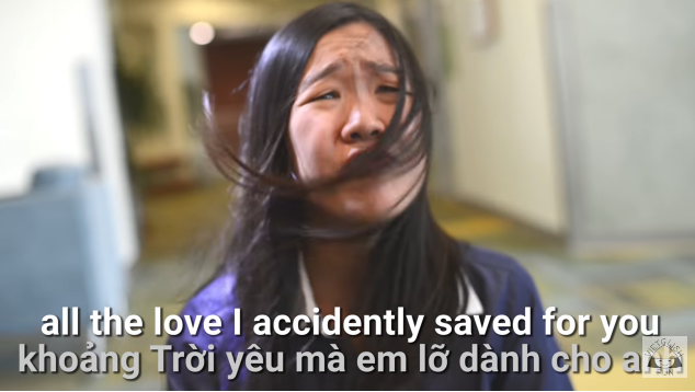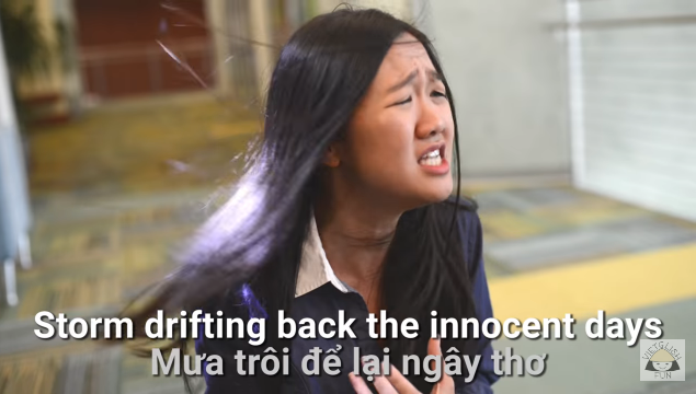 Bằng sự duyên dáng đáng yêu đến mức ”không thể nói bằng lời”, Kayla đã đưa Em gái mưa lên một tầm cao mới khi dịch sang tiếng Anh, mà còn đúng chất ”word by word”: Tả thực! Từng câu tiếng Anh rất khớp nhạc và dịch rất chuẩn. Chưa kể, các tình huống trong MV còn được cô nàng ”làm quá” lên, khiến ai xem cũng phải cười bò.