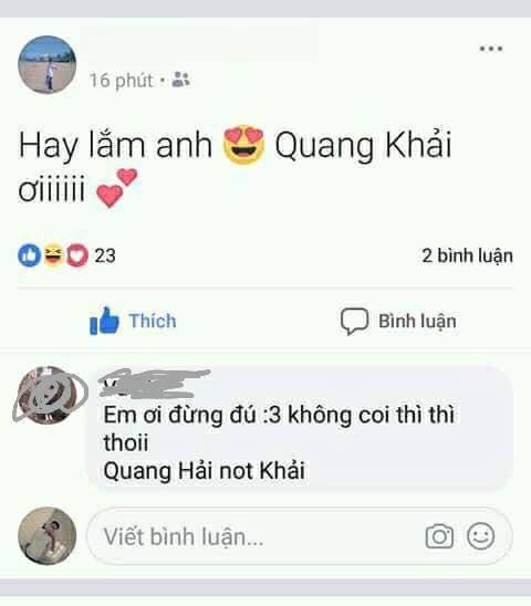 “Quang Hải not Khải”, một cư dân mạng đã phản ứng lại trước sự nhầm lẫn này.